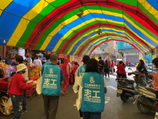 圖2:山達基志工與宮廟合作幫助人們通往快樂之道。