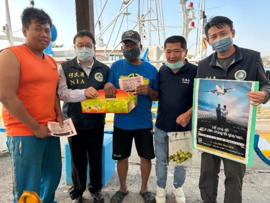 圖2:服務站及專勤隊人員前往彌陀區漁會關懷移工並宣導專案。