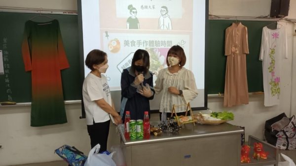 圖二:在講師范玉雲(右)帶領之下,小琳(中)分享越南的文化與生活,與同學們一起製作越南美食。