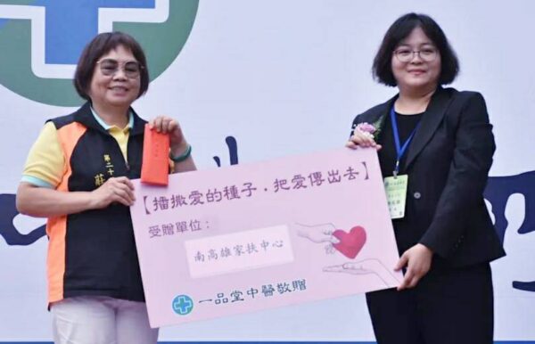 圖3:南高雄家扶中心主委莊月珠(左)代表接下「一品堂中醫」捐助善款。