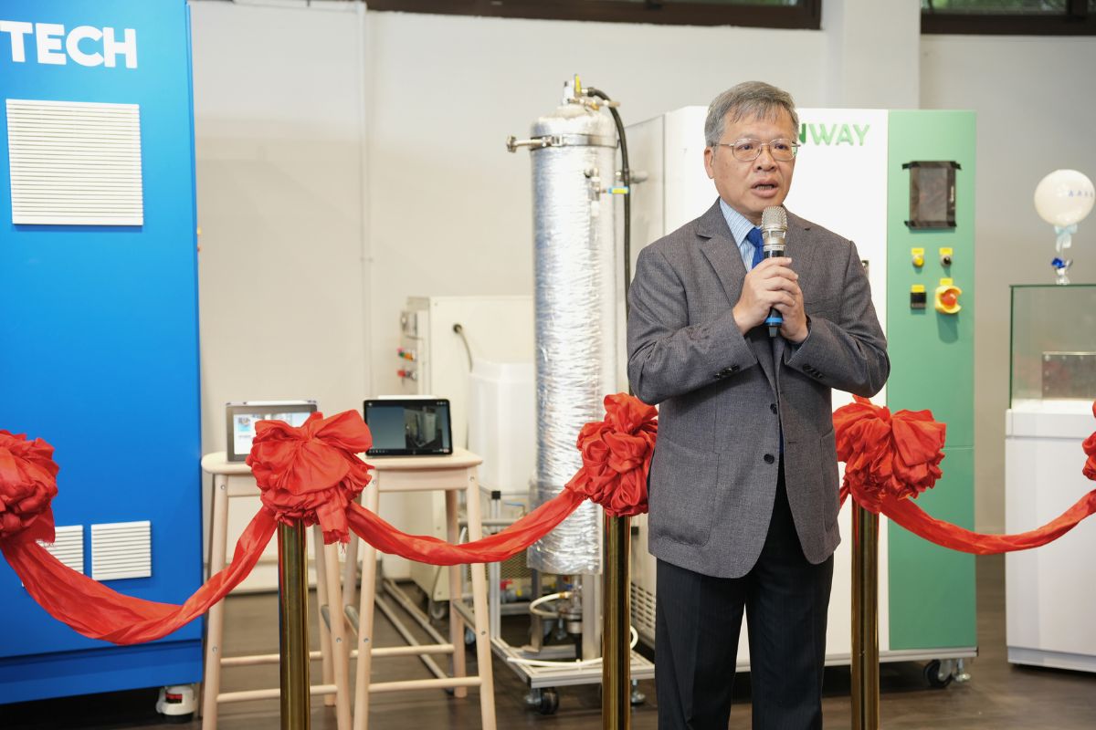 蕭述三校長則表示,在全球面臨氣候變遷與碳排壓力日益嚴峻的此刻,這座綠氫應用示範實驗室的啟用,意義非凡,希望透過中央大學與產業夥伴的緊密合作,加速台灣氫能技術發展,並成為國際能源轉型趨勢貢獻關鍵的力量。