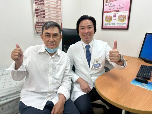 圖2:看見患者重新找回笑容,是醫師最大的成就感,曾經深受背部與下肢劇痛所苦、走路一跛一跛的患者,在接受小港醫院神經外科劉要儒醫師治療後,疼痛大幅緩解,開心地比出大拇指,感謝劉醫師讓他能重回正常工作與生活