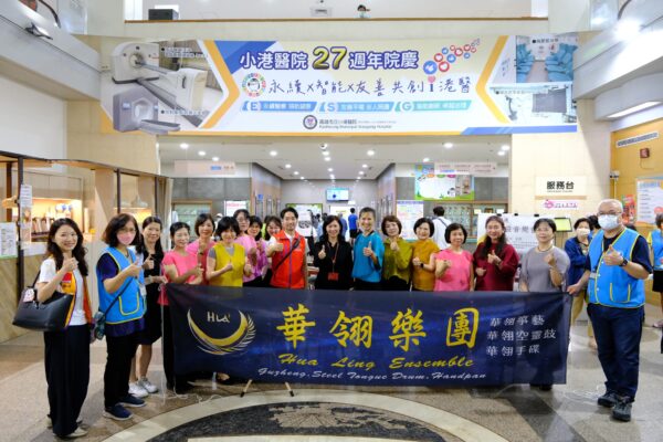 劉大川 / 為感謝第一線醫護人員長期守護市民健康的辛勞付出,高雄市群英獅子會聯合華翎樂團(黃文玲老師)與高雄市立小港醫院,8日在院內舉辦一場溫馨感人的「快閃醫護公益音樂會」,以音樂傳遞關懷與支持,讓繁忙且緊繃的醫院能增添一抹溫暖的樂章。